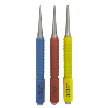 Drives nails flush or below the surface of the wood without damaging the surrounding wood. Marking sizes: 1/32", 1/16", and 3/32". Color coded and stamped for easy identification. Chrome plated to resist rust.